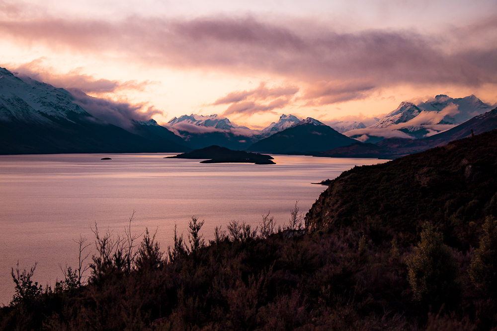 On your way back to Queenstown, stop at Bennetts Bluff Lookout for beautiful views of Lake Wakatipu and surrounding mountain ranges. You will see the turnoff for the parking lot on your right hand side about 20 minutes from Glenorchy as you head toward Queenstown. Sunset can be magic if you are lucky and time it right with beautiful pink hues reflecting in the sky and water of Lake Wakatipu.